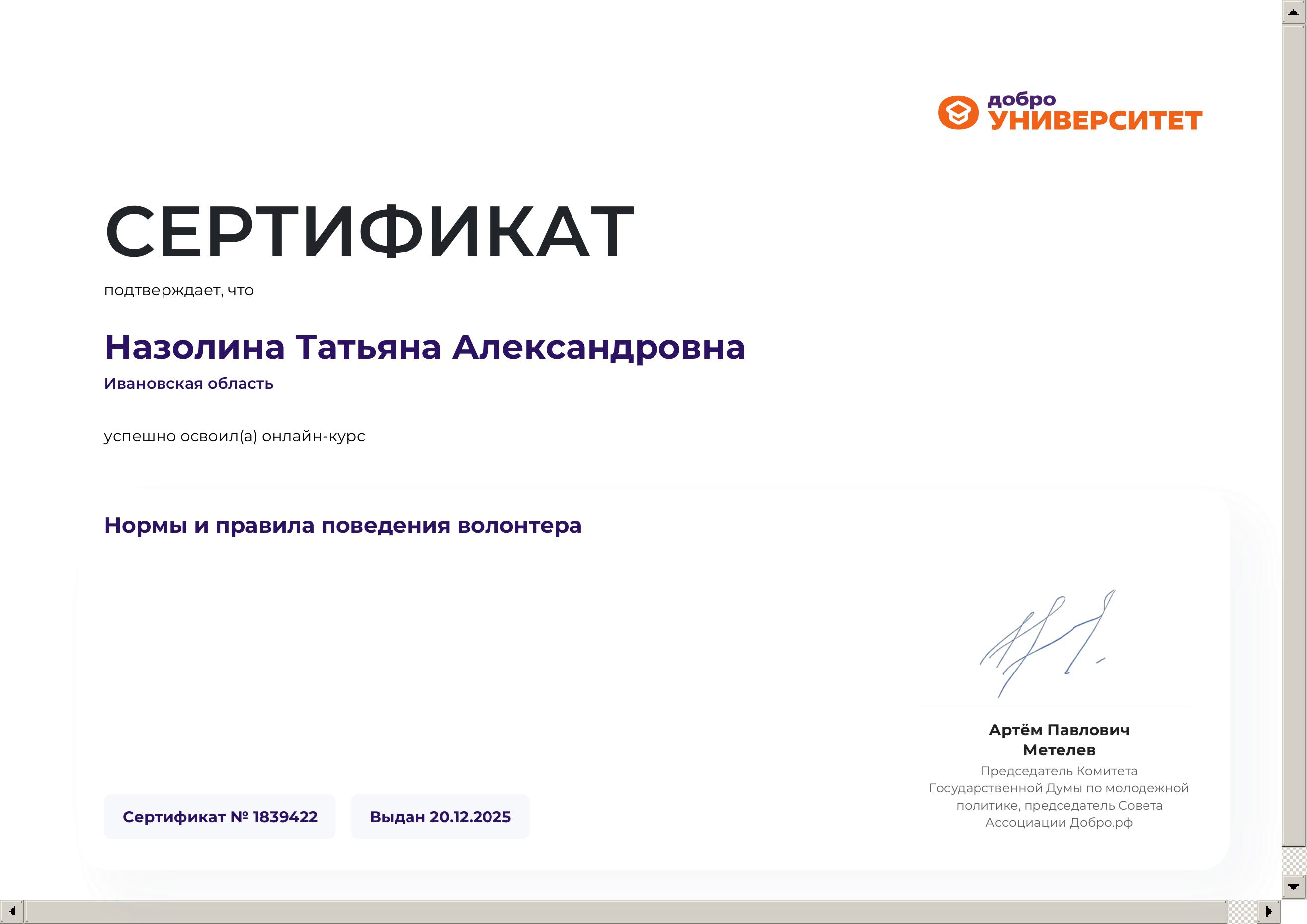 Сертификат.