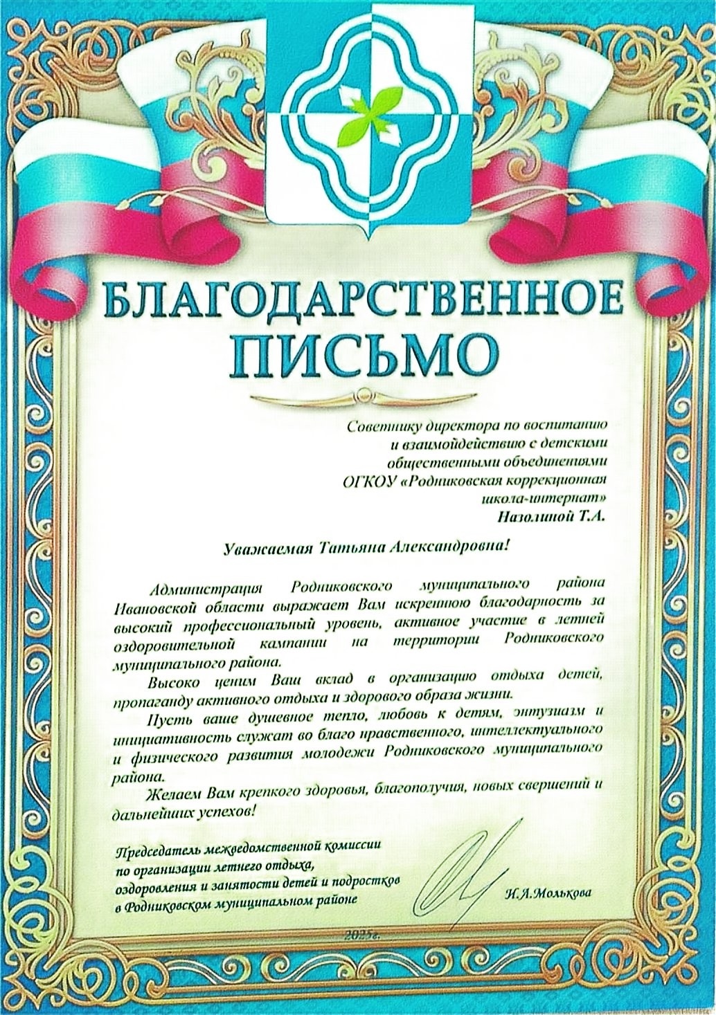 Благодарственное письмо